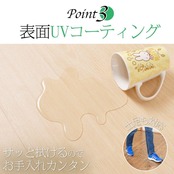 ○製品の表面には、汚れや菌の付着を防ぐための防汚・抗菌のUVコートが施されています。微細な凹凸加工によって滑りを軽減する効果があります。